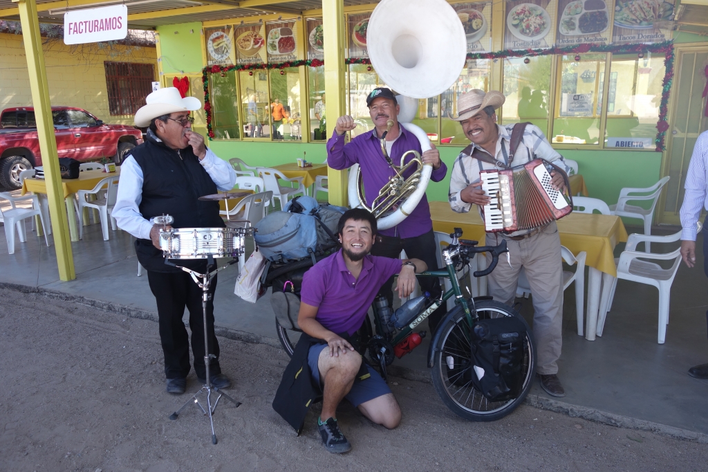 JUGEMテーマ:海外一人旅 12月16日 昨日は国道15号沿い(Navojoa北部)の宿にチェックイン。居心地のとても良い宿だった。 ここ数日、毎日結構な距離を走っているからか腹が減ってしょうがない。昨晩は夜な夜なチョコレートをむさぼった。 今日も走る。インスタントラーメンとフルーツで朝ごはん。 出発。 今日も国道15号を南東に走る。 すぐにNavojoaの街中に入った。大きな町で、雰囲気も良い。 体が勝手に食堂に、、、。 タコス旨い。 ...