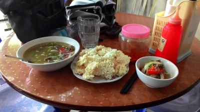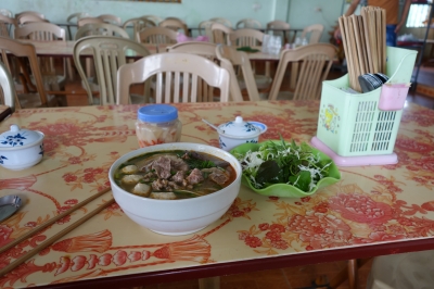 JUGEMテーマ:海外一人旅 9月19日 昨日はハティン省 北部の小さな町に着き宿にチェックイン。今日も国道1号を北へ走る。 天気は晴れで気温はさほど高くはない。 出発し、すぐに目についた食堂に入った。 適当に注文すると、煮込みホルモンのたっぷり入った大盛雑穀雑炊が出てきた。 付け合わせにミントやらドクダミやらの生の香草。そして唐辛子。 色が少し変わってはいたが、美味かった。やみつきになる系のコッテリ雑炊。 腹も満たされ、出発...