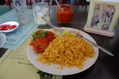 JUGEMテーマ:海外一人旅 9月22日 昨日はニンビン省 ニンビンに着き、宿にチェックイン。 ここ連日走ったので、今日はのんびりしよう。 散歩がてら町をサイクリング。 ふらりと入ったお店の揚げ鶏と焼き飯がとても美味かった。 約200円 美味いトマトソースは久々。ソースの絡んだ揚げ鶏の表面パリパリ、中も肉厚。 その後、パブリックマーケットへ チョムチョム(ランブータン)を買った。 宿...