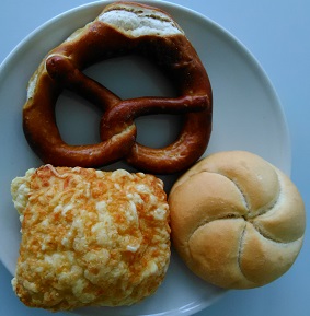 JUGEMテーマ:留学 ドイツのパン、こちらも美味しいとネットにあったので楽しみにしていました。確かに最初は美味しかったのですが......どれも固くて段々飽きて来ました。プレッゼルも塩味がきつすぎでした。 長くドイツ暮らしをしている日本人の人は日本で食べるような柔らかいパンを自分で焼いている様です。1ケ月ちょっとしかいませんでしたが、その気持ちがわかるような気がしました。