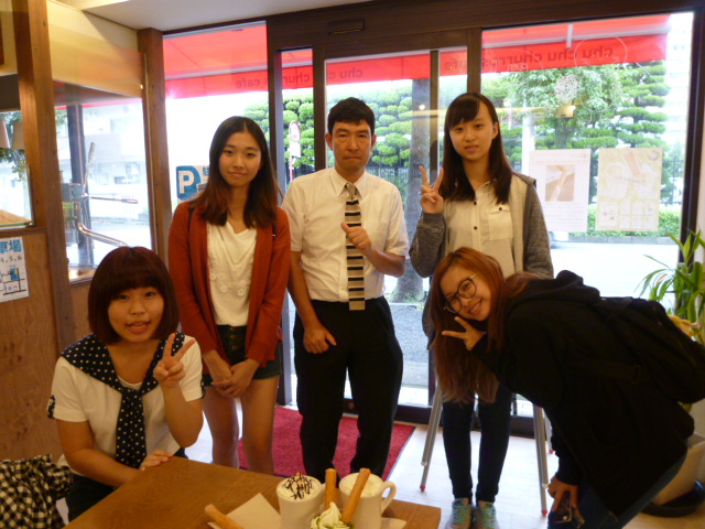 JUGEMテーマ:留学 先日、来日した 台湾からの 留学生の皆さん 後期が始まるまで 少し 日にちがあるので 日用品等を 買い揃えに行った帰りに 逢ったので ティータイムと称し 近くの カフェに お連れしました。 洋の東西を問わず、若い女の子は 甘いモノが好きなようですw こちらが 思っている以上に 喜んで頂けたので またご馳走しますネ 妻に感謝、息子に感謝、両親に感謝、そして全ての人に感謝 只今、いしべっち総選挙を開催中 投票先はココ 皆様の 投票 待ってます。 徳島文理大学の...