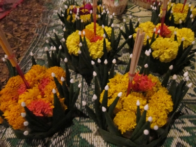 スコータイは5日間ほどロイクラトン(灯篭流し)のお祭り。 本番は11月28日のみなので見ることはできませんが雰囲気を味わいに。 28日はそう満月。 この線香に火をつけて水辺に流すのです。 歴史公園内の遺跡はライトアップされており、 22時を過ぎてだいぶ人も少なく貸切状態。 無料で乗り降りできるトロリーもぐるぐるまわっているので、 広い公園を手軽に散策できます。タイ語できないとキツイかな。 ホテルのシャトルの最終便が来る時間に合わせて、 近くのレストランで...