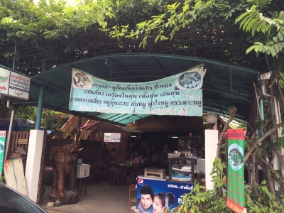 たまにはタイのうまいものを。 義父に「なんか近くに美味しいグワィティアオ屋(タイの麺類)ない?」と聞いた所あるお店をご紹介頂きました。 バンコク付近ではやや珍しいクリアスープの牛肉麺屋さんです。 最近お気に入りのこのお店はバンコク東郊外のショッピングモール「メガバンナー」のすぐ近く、お買い物の際には寄るようにしています。 レストラン自体が古い民家を改造したスタイルで軒下が座席、上の階は実際にまだ人が住める状態なようです。 多少補強もしているものの、古きよき建造物です。 近頃の突貫作業で...
