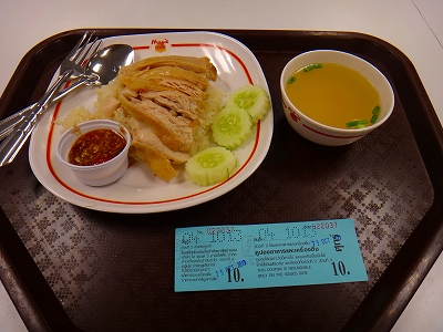 昨晩は空港で夜明かし。 しばらく空港内を徘徊したのち、1階のベンチでウトウトしてたら、タイのお姉さんが話しかけてきた。象で有名なスリン県の方だそうで、この後、7時間かけてタクシーとバスで帰るという。現在は埼玉在住だそうだ。 お姉さんと別れて、空港1階のフードコートでカオマンガイ。かなり早めの朝食。もっとも日本ならもう7時だけど…。 カオマンガイが最近のタイ料理のマストだ。もっとも海南チキンライスをルーツにしてるので純粋なタイ料理といえるのか…。実際、マレーシアやシンガポールでもチキ...
