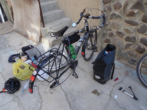 日付:2019年5月28日(火) 天気:晴れ 移動距離:101km 総移動距離:24,482km 本日の移動:チャヤパタ→サリナスに向かう途中 チェックイン時にイライラさせられた宿だが ベッドの寝心地もこれまた悪かった。 真ん中が「く」の字に凹んでいて 腰が沈み頭と足が高くなってしまう。 毛布や服を真ん中にあてがって なんとか寝ることができた。 まったく・・・。 そんなこんなでややイラついていたら 悪いことは続くもので、 出発しようと準備していたら 後輪のパンクが発覚。 ここのとこ...