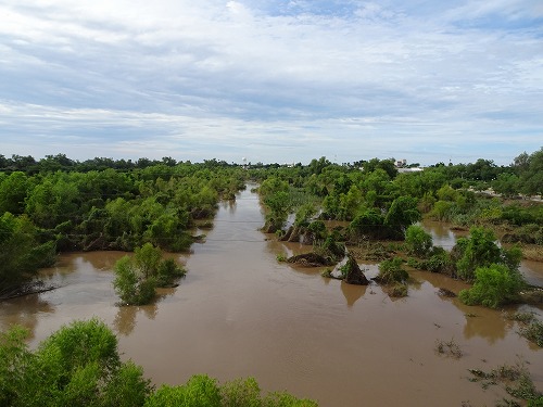 日付:2018年9月29日(土) 天気:晴れ 移動距離:44km 総移動距離:15,734km 本日の移動:Guasave→Guamuchil 宿代が比較的安かったので連泊も考えたけど、 部屋があんまりくつろげる感じじゃないので移動することにした。 大雨の影響はまだ残っているようだ。 これまでは涸れている川がほとんどだったのに、最近は茶色い水がごうごうと流れている川が多い。 ハイウェイの変わらない景色に飽きていたので、 裏道のような場所があれば迷わずそっちを選択する。 多少道は荒れるけど、声をかけ...