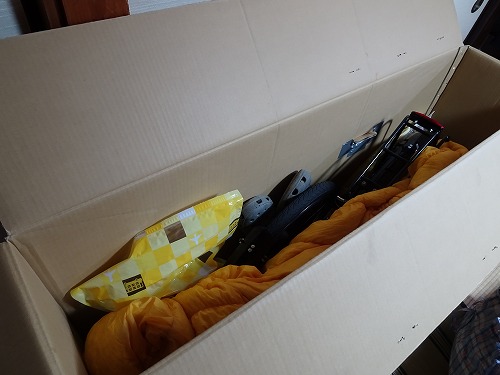 出発に向けたパッキングがほぼ完了した。 自転車は段ボールに入れて、周りにクッションとなるものを詰め込んだ。 まず、サドルとペダル、ハンドルを外し、 さらにフロントフォークと前輪をセットで引っこ抜けば問題なく運べるサイズになる。 黄色い細長い物体は寝袋。なかなかいいクッションになりそうだ。 サンダルや圧縮袋にもこんな時はクッションになってもらった。 残りの荷物はニュージーランドから帰国した時に使ったどでかい袋に詰め込んだ。 隅の方にやや穴が見られ...