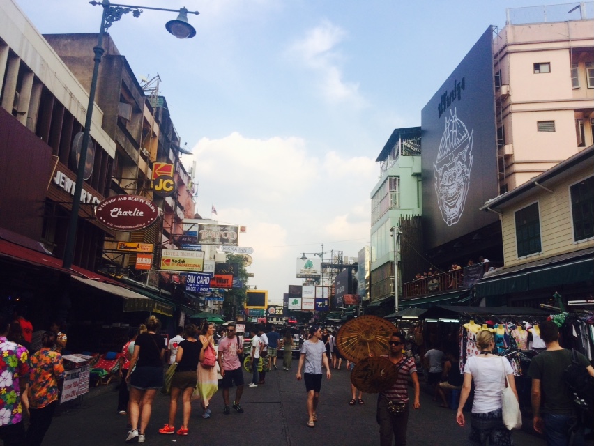 JUGEMテーマ:世界一周の旅 (出発。のつづき) 昼間のカオサンロード。 空港からのバス よくわからないところで降ろされ 目の前の案内所で 地図を描いてもらい 歩き始めます。 実際はこの地図より 2本くらい 交差点多いけど 教えたい気持ちが伝わったので 全然ok!!! 歩道も車道も 屋台が建ち並び わやわや がちゃがちゃ。...