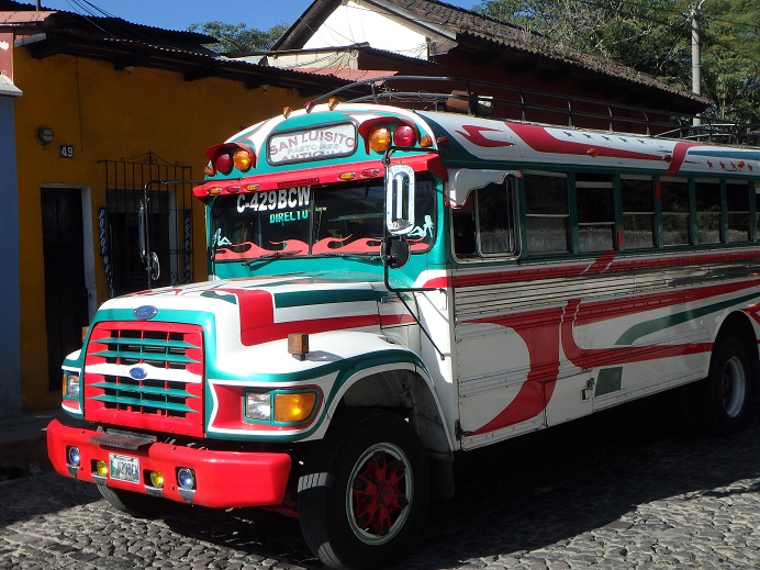 みなさまBuenos Tardes。 更新が遅れて申し訳ありません。 スペイン語学校の宿題や復習で時間が無かったり、寒暖の差が激しかったせいか風邪を引いたりして更新できなかったのです。 本当ならこの記事にマンガも載せたかったのですが、今なお熱が引かず、マンが描くのも勉強もできない状態なので、 今日はただ一応無事だということを伝えるのみの小記事です。 ↓通学路にて。グアテマラ名物チキンバス。日本のデコトラみたいですね。 ↓いろんな色や装飾があります。 チキンバスは見てる分には楽し...