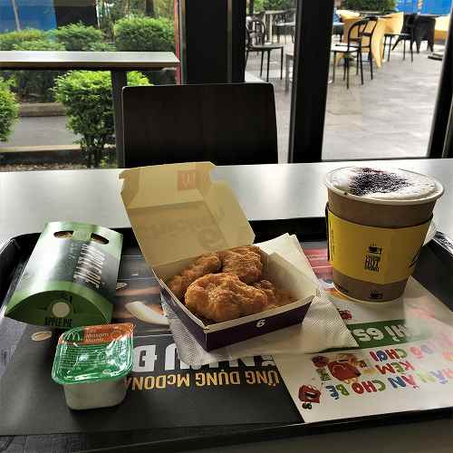 チキンナゲット、アップルパイ、カプチーノ。 近所のマクドナルドでの朝食。 ほんとうはエッグマフィンとハッシュドポテトの朝食が食べたかったんですが そのセットは10時までということで泣く泣く上の組み合わせに。 ホーチミンではようやく店舗での食事も解禁され 街に活気が戻ってきました。 でも鎖国中だし、イベントできないし、バーやディスコも未だに禁止です。 普段だったら写真に写っている外の席は欧米人でいっぱいなのに 今はだ...