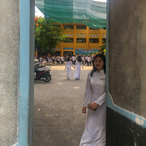 女子高生の白いアオザイ姿。久々に見ました。 今週の月曜日の出来事。 最近ではほとんどアオザイ姿の女性を見かけなくなりましたが 10年前は毎日こんな風景が見られました。 月日が経ち、いつの間にか街からだんだんアオザイ姿が消え 見かけるのはカラオケ店の店員か、ホテルのフロントか、結婚式くらい。 でも月曜日はアオザイの日となっているので たまに見かけることもありますが。 この高校はパンガンダランから目と鼻...