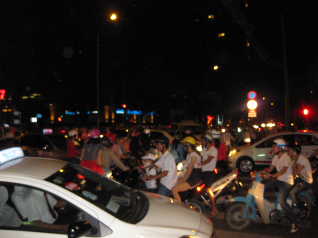 JUGEMテーマ:日記・一般 JUGEMテーマ:アジアのニュース JUGEMテーマ:海外旅行 総合 JUGEMテーマ:雑学 JUGEMテーマ:ベトナム ホーチミンは何かにつけ盛り上がる 10月31日はハローウィーン その日は、出張帰り 家の近くまでは順調も 家まで約2キロ、乗ってるタクシーが動かない 運転手が何やらベトナム語で話しかけるが意味は判らないが雰囲気で、歩いたほうが早と言っているのは容易に分かる 香港ではないが、交差点は占拠状態 夜11時歩いて家まで、疲れた