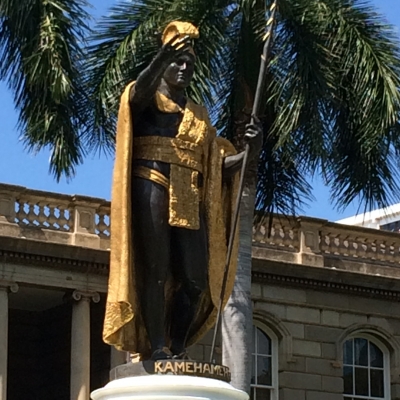 JUGEMテーマ:ハワイ(オアフ) カメハメハ大王像 カメハメハ1世の銅像です。 ハワイ諸島を初めて統一して1810年にハワイ王国を建国しました。 カメハメハとは「孤独な人」「静かな人」の意味だそうです。 カメハメハ1世は外交に優れた人で統一の裏にも外国の力があったそうです。 しかし、彼の偉業は「ママラホエ」という非戦闘員を守る法律を作ったこと。 それは現在の世界中で認められる先駆的なものでした。 カメハメハ大王像の左手の槍は平和の象徴、 右手はハワイの繁栄を表しており、宮殿の方向いています。 ...