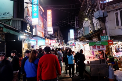 【写真−1 日本の正月休みとあって日本人観光客が多い】 台北市内にはいくつかナイト・マーケットはあるが、宿泊先の下車駅剣澤から目と鼻の先に『士林夜市』がある。写真−1は剣澤駅のスクランブル交差点を渡った先から始まる夜市の入り口で、元日にも関わらず若者を中心に人出はかなり多い。 【写真−2 別に夜市で買わなくても良い物だがこういう雰囲気で買うから良いのか】 両側に飲食店やブティックが並ぶ商店街道路を利用している夜市で、その道路上に食べ物や小物を売る屋台...