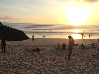 JUGEMテーマ:インドネシア:バリ島 空港から超絶ドライブテクニックでホテルまで送迎。渋滞していると言いますが、本当にすごいです。 なにがすごいって、大気汚染がひどい。におうし、むせるし。 ホテルはシェラトンバリクタリゾート バスルームが丸見え!!ハネムーン仕様だなぁ。 花はフランジパニ。チェックインの時に髪に挿してくれます。いい香り。 一息ついた後、クタビーチで夕日を見るためにビーチウォークバリに通り抜けて クタビーチへ きゃー眺めがいい!!と思ったのもつかの間。おじさんたちにかこまれ...