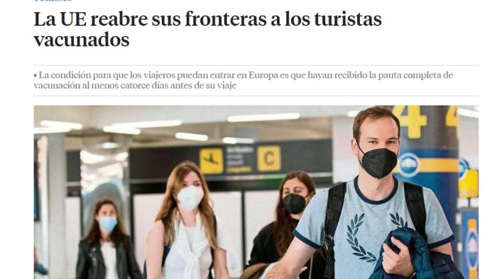 JUGEMテーマ:海外旅行 総合 スペインが非常事態宣言を解除したことを受けて、早速、旅行を計画している日本人の話を聞きましたが、まだEUが門戸開放していないぞ・・と思っていました。ワクチン済みの人は旅行ができるようになるという噂がありましたが、正式の発表は今日でした。今日の報道から抜粋したニュースは次の通りです。 ● 到着14日前までに、EUの基準(もしくは世界保健機構基準)のワクチンを済ませた人はEUへの旅行が可能になります。 以前別の報道で見た時は、日本のワク...