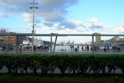 【写真−1 この時は大きなクルーズ船が停まっていたが夜に見たらいなくなっていた】 基隆駅から写真−1の港風景を左に見ながら台湾旅行最後のホテルへ向かう。基隆港は台湾第2の港だが、思っていたより小さい感じがした。港見物は明日の午前中にし、ホテルに荷物を置いたらすぐにバスに乗って観光地と知られる『九份』へ行く。 【写真−2 台湾は警察力が強いと聞くが交通関係取り締まりはまた別か】 駅からホテルへの道筋は商店が建ち並び賑やかだが、写真−2のように歩道をオ...