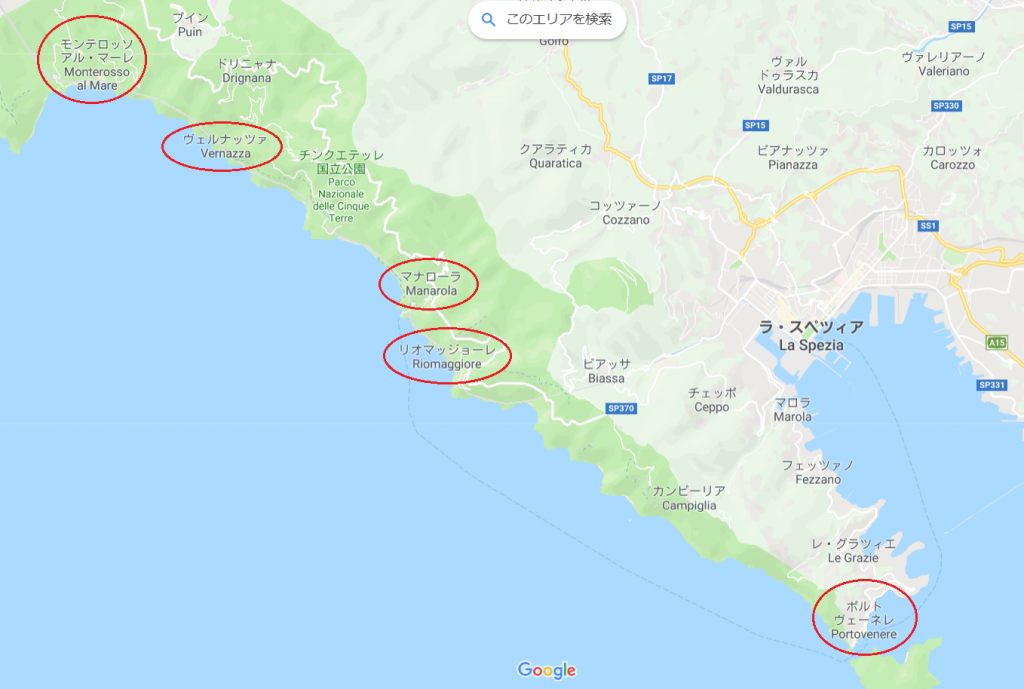 JUGEMテーマ:イタリア JUGEMテーマ:海外旅行 総合 チンクエテッレは世界遺産にも登録されています。 北からモンテロッソアルマーレ(泊まる村) ヴェルナッツァ 縮尺の関係で載っていないコルリニア この村は山の上にあるので船では行くことができません。 その南がマナローラ、一番南がリオマッジョーレ。 この5つの村がチンクエテッレです。 コルリニア以外の村を経由して ポルトヴェーネレと...