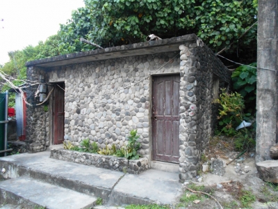 【写真−1 使用できるのかどうか分からないし中を覗く気もない】 風が吹き募るバスコ港の様子が分かり、また坂道を上がってホテルへ戻るが、その坂道の途中で見たのが写真−1。これはトイレで、バタネス地方特有の石積みの家を模して造られている。ただし、トイレとして機能しているかは不明。 【写真−2 一番上の島はフィリピン最北の有人島『イトバヤット島』】 写真−2は港近くのバタネスを管轄する電力会社の建物にあった看板で、写真右に3つの島...