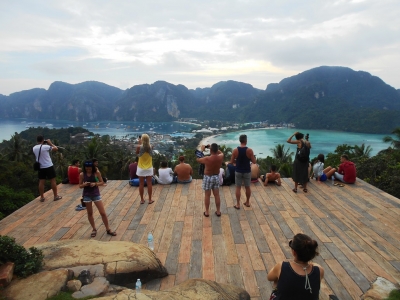 【写真−1 行くだけの価値はあるポイント】 ビュー・ポイントの名前を文字通り感じさせる写真−1の木張りデッキの展望台。斜面に張り出していて、ピーピー島の地理の様子が手に取るように眺められる。デッキの縁に座ると気持ちが良い。 【写真−2 30年前は正に楽園の島であった】 写真−2は目立たぬ所に張られた、2004年の津波被害の津波前と津波後の様子。この中で、一番上の右から2番目の写真で、現在観光客相手の建物が密集する平地の30年前は建物など全く無く、一帯は椰子林であっ...
