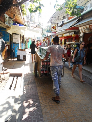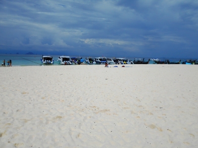 【写真−1 これだけの大きい砂浜だと沖には珊瑚礁が】 バンブー島の砂浜は写真−1のようにかなり奥行きがあって、押し寄せる観光客の姿とスピード・ボートの姿もそれほど気にならない。乾季のこの時期としては雲が多く快晴ではないが陽射しと白砂からの照り返しは強く、砂浜を横切って木陰の下へ。 【写真−2 木陰は昼寝に最適だがゴミのポイ捨て観光客も多い】 陽射しを避けて木陰の落ちる写真−2の場所に移動。こういった観光地の浜には売店などの建造物が造られるものだが、全く見...