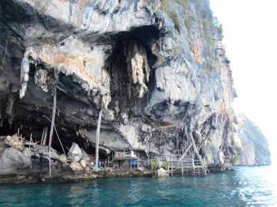 【写真−1 巣の採取時期は決められている】 観光一色のピーピー島だが、写真−1のように島の断崖にある洞窟ではツバメの巣が採れる。このツバメの巣はフカヒレ、乾しアワビと並ぶ広東料理の三大高級食材と知られ、採れるのは主にタイやインドネシアになるが、フィリピンのパラワン島でも採れる。 【写真−2 上陸して見られればもっと良かったがこの近さが限界】 ツバメの巣はアナツバメという種が唾液の分泌物で作られるが、写真−2は別の洞窟のツバメの巣採取場所で、竹で足場が組ま...