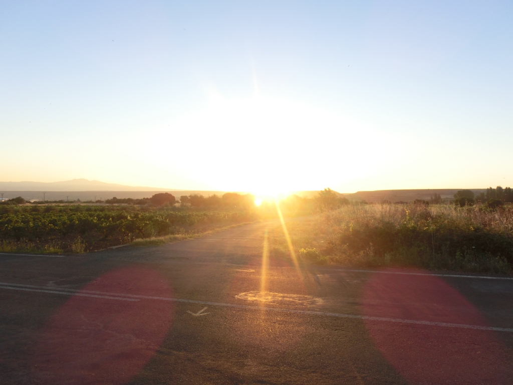 2013年7月30日 カミーノ8日目 地平線から太陽が昇る。 鮮烈な光が遥か遠方の山容を掻き消し、私の目に飛び込んでくる。 10分間の日の出… 朝のゴールデンタイムを終え、柔らかく表情を変えた朝日が沿道のブドウ畑を包み込む。 午前7時。 いつもと変わらない「太陽の営み」が、スペインの大地に1日の始まりを告げた。 これまで旅を共にしてきた仲間たちから離れ、1人アルベル...