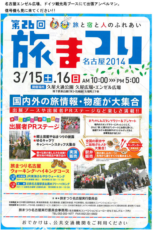 JUGEMテーマ:アンペルマン JUGEMテーマ:ドイツ こんにちは。緩々です。 震災から今日で3年。 復興はまだまだのようですが、それでも日一日と 着実に前に進んでいるようです。 私も取材で東北をぐるりと回りましたが、 現地で元気に活きる人たちと、 その景色の違いに驚いた記憶はまだ新しく有ります。 これからも、本当に東北の日本の皆でがんばっていかなければと思います。 さて、今週末15日(土)16日(日)は名古屋にて 出張アンペルマン。 久屋大通り公園、エンゼル広場のドイツ観光局さん ブース...