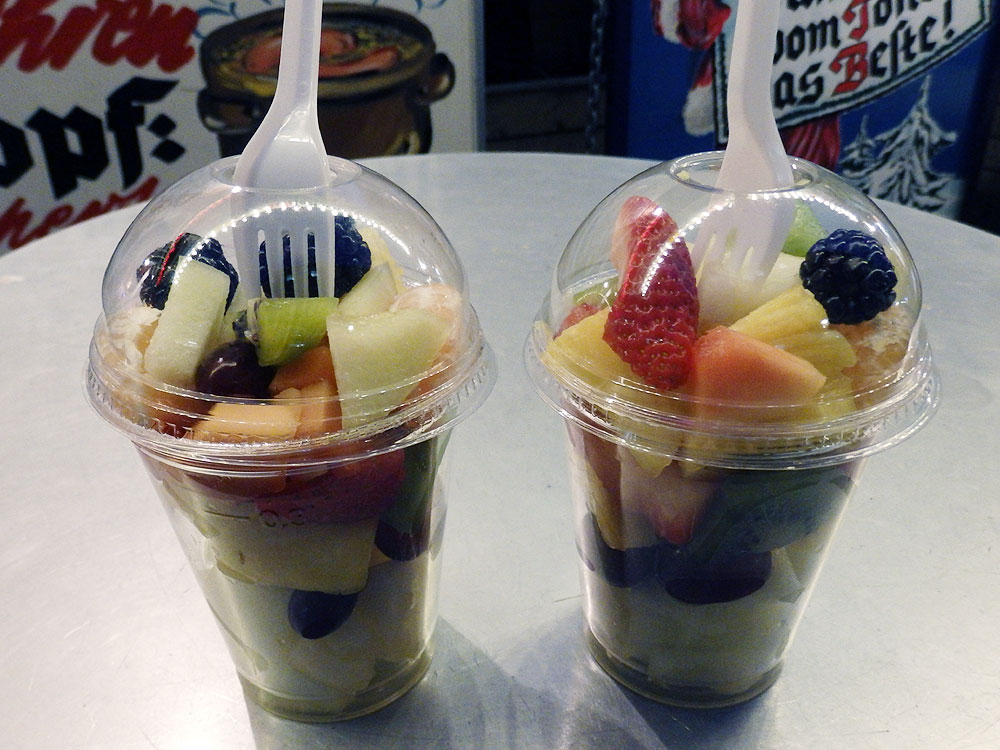 今日の夕方。花火を買いに出かけて、旧市街の市場をうろうろしてた時、フルーツ屋のお兄さんが「ハロー!!」と、声をかけてきました。満面の笑顔で「ハロー!!」と返したら「このフルーツミックス、1ユーロで買わない?」と、、、はは。でも、指をさしている方を見ると2.99ユーロで売っていたモノを、1ユーロで売ってくれるらしい。ああ、これはお得。駅で少し大きいモノだと5ユーロ位するフルーツミックスが1ユーロです。早速2つ購入して、美味しく頂きました。なるほど、夕方には市場ならではのお値引タイムがあるらし...