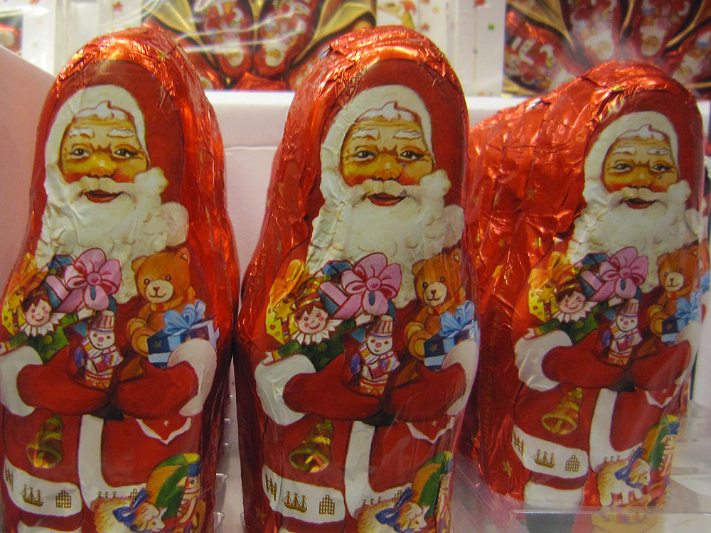 写真はクリスマスシーズンに売っている、サンタのチョコレートです。表面の銀紙をはがすと中は空洞になったチョコレート。15?程はあるので、1人で食べるのは結構大変です。この日もレジには5〜6個手に抱えた少年が並んでいました(笑)微笑ましい風景なのですが、、、あまり甘いモノばかり食べてると、大人になって太るぞ〜!!! ...