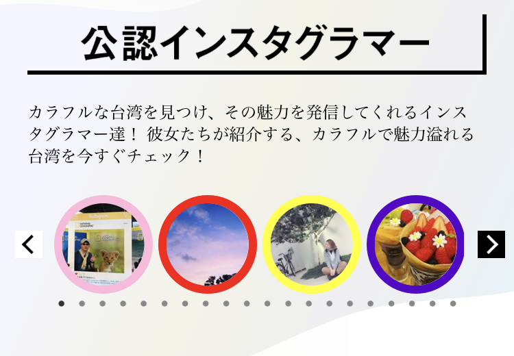 JUGEMテーマ:台湾 台湾公認インスタグラマーになりました。 一番左側のピンクの円の中がプロフィール画像です。 アドレスはこちら https://www.instagram.com/tsmac0730/