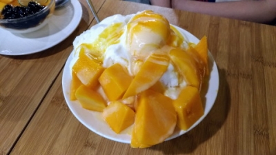 今回はマジでがむしゃらに行動しておりますよ。 デザートを食いに忠孝復興站からわざわざ行くんですよ、士林へ。 台湾のココロの師匠が士林の「GomanMango」は控えめに言って最高!って言ってるんだから行くしかないっしょ。 ただそんな面識のない師匠の「カキ氷で雪花冰は食わん、牛奶冰だろ!」はスルーして注文は芒果雪花冰と芒果豆花。一人一品は頼まないといけないらしい。 そんな芒果雪花冰180元、ごっつごつにカットされたマンゴーが...