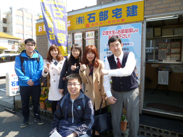 台湾の留学生の皆さんが来日 ようこそ日本へ ようこそ徳島へ ようこそ徳島文理大学へ これから宜しくお願いします。 妻に感謝、息子に感謝、両親に感謝、そして全ての人に感謝 石部宅建は 2017年も 徳島文理大学の 学生物件紹介数ナンバー1を目指します。 徳島文理大学の学生さんに お部屋を ご紹介して30年 地域の皆様に支えられ、おかげさまで 2016年に 創業30周年を 迎えました。 石部宅建は ...