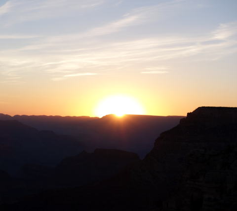 JUGEMテーマ:アメリカ グランドキャニオンでは朝陽が昇る前に起床[:!:] この時のアメリカでは国立公園滞在が多く、ほぼ毎日5時起きでした[:おてんき:] 陽が出てきます いつ見ても有り難い気持ちになります[:ニコニコ:] 沢山の人が、写真を撮ったり運動したりコーヒー飲んだりしています。 陽が出てくると岩肌も明るくなります。 グランドキャニオンの目覚めって感じです[:ニコニコ:] 日の出も日の入りもお天気によって色々ですよね。 夕陽は雲がたくさん 大きな雲が夕陽のところにちょうど...