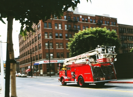 JUGEMテーマ:アメリカ 緊急出動したファイヤーエンジンさんなのでございます。 梯子車?かなぁとは思うのですが、モノノケ館長は消防車の識別ができません。 ま、消防車ということで、括らせていただくのですけれど。 アメリカの消防車の特徴として、運転台がオープン!というのを挙げることができるのではないかと存じます。 全部が全部ではないのでしょうが、こういうタイプの車は珍しいモノではありません。 視界の確保が目的なのか?それとも脱出に都合がいいということなのか? ご存知の来館者様には、カキコ!など...