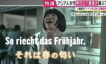 JUGEMテーマ:ヨーロッパ ドイツのDIYメーカーであるホルンバッハのCMが、アジア人女性への差別だとして批判に晒されている。CMでは、野良仕事をする中年のドイツ人男性が脱いだ下着がパッキングされ、自動販売機で販売される。それを購入したアジア人女性が恍惚の表情を浮かべて白目を剥くというものだ。動画をよく見ると、パッキングされた下着が運ばれるベルトコンベアには「春の匂い」と書かれており、これが日本人女性であることがわかる。◆韓国ではいち早く話題に(略)◆ドイツ在住の韓国人男性が署名活動を開始(略) ...