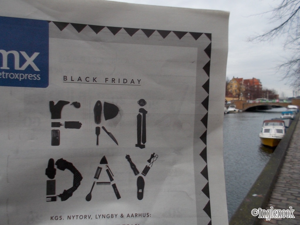 今回のコペンハーゲン滞在で初めて出会った言葉、ブラックフライデー Black Friday。 11月の第4木曜日に祝われる感謝祭 Thanksgiving Day の翌日の金曜日のこと。 この日から各ショップがクリスマスに向けてセールを始めるのです。 もとはアメリカから始まった習慣だそうですが、ヨーロッパにも広まりつつあるようです。 今年2017年のブラックフライデーは11月24日。 地下鉄のホームドアには家電量販店 Elgiganten の広告。 デンマークの老舗デパート、マガシン Magasin はなんと当日24時間営業! ブラックフライ...