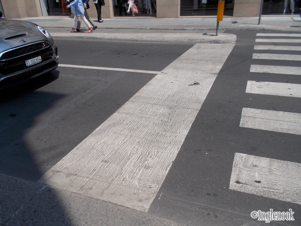 ヨーロッパの街で横断歩道を渡るとき、車の停止線が横断歩道に近すぎて怖い思いをしているのですが。。。 ヨーロッパの横断歩道ぎりぎりの停止線 イタリアもやはり歩道ぎりぎりでした! 太めに描かれているのがちょっとおもしろいな〜と思いながら停止線から遠い反対側の端を歩いて渡ったのでした。 イタリア、ミラノ。 高級フードマーケット、イータリー Eataly のトートバッグ