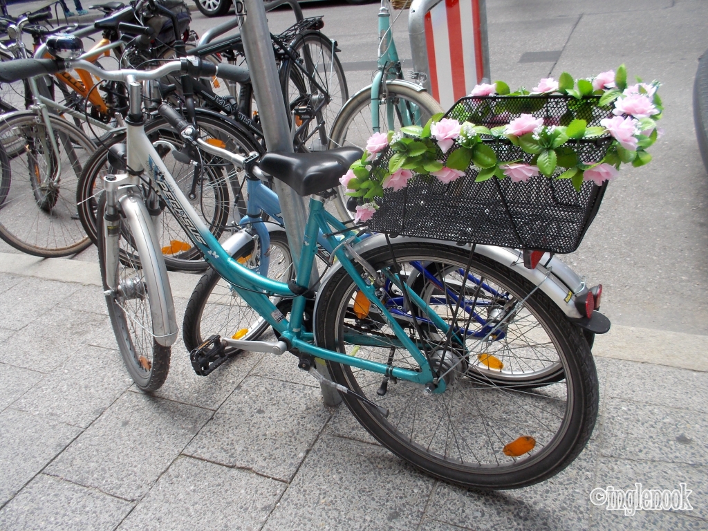 ヨーロッパでよく見かける造花などでデコレーションした自転車。 飾り方にも流行があるのでしょうか。 2台続けて見かけたのが、荷台のかごのふちを造花でデコレーションした自転車。 ピンクと小さな白い花がスイート♪ 車体の色とおそろいの白い花が大人かわいい♪ どちらもミュンヘン・シュヴァービングで見かけました。 ドイツ、ミュンヘン。 コペンハーゲンのデコ自転車 は こちら♪ ヨーロッパのデコ自転車たち は こちら♪ ドイツ・ケーファー Käfer のガラスのマ...
