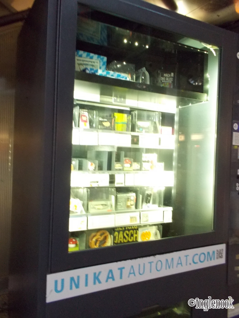 ドイツで自動販売機といえば、地下鉄駅構内にあるミネラルウォーターやジュース、スナックを売っているものがほとんど。 路上ではほぼ見かけません。 なのでミュンヘン中央駅でこれを見つけた時はめずらしい宝物を見つけた気分でした! ユニークな雑貨の販売機。 きのこのキッチンタイマーと口ひげ・雨雲・紙飛行機の形のブローチ。 ミュンヘンならではのプレッツェルモチーフの雑貨も。 犬用のおもちゃと赤ちゃん用のおしゃぶり。 どれも値段は千円前後。 表面の岩塩がうまく表現されていたわんこ用のプレッツ...
