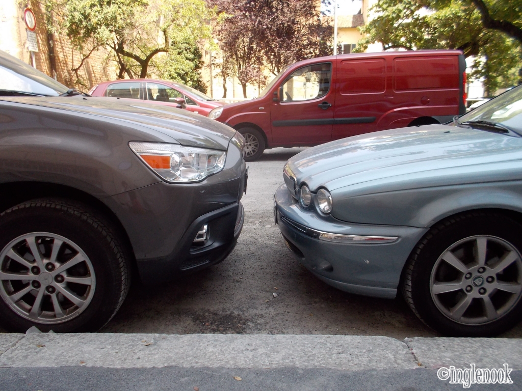パリで前後の隙間がないほどの縦列駐車を見たときも驚きましたが。 パリの縦列駐車 ミラノの向かい合わせ駐車もびっくりです。 イタリア、ミラノ。 イタリア イータリー Eataly のエコバッグ