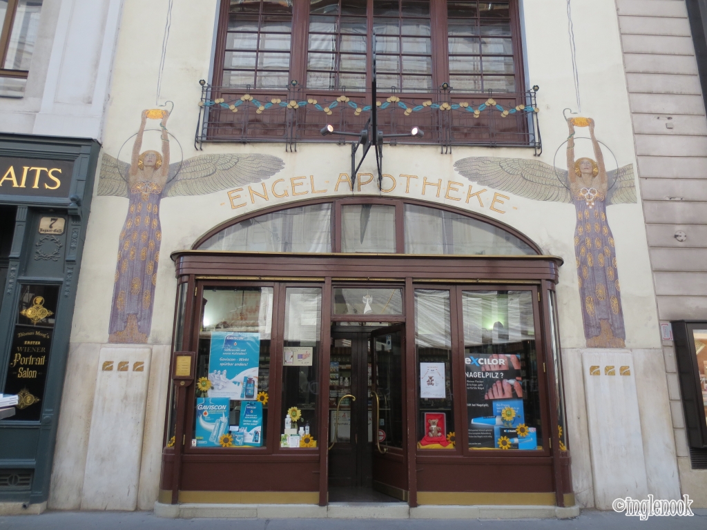 ウィーンはバロック建築をはじめ、さまざまな様式の建築をみることができます。 建築好きにはたまりません! ユーゲント・シュティール様式のエンゲル薬局 Engel Apotheke。 旧市街、アム・ホーフの近く。 入り口の両脇にならぶ天使が印象的。 オーストリアの建築家、オスカー・ラスケの設計です。 器をかかげた腕、からみつく蛇、大きく広げた翼、金色の模様が美しいドレスが大理石のモザイクで描かれています。 華美ではないけれど上品でうっとりする美しさ。 タイポグラフィも絶妙のバランスで美しい! ...