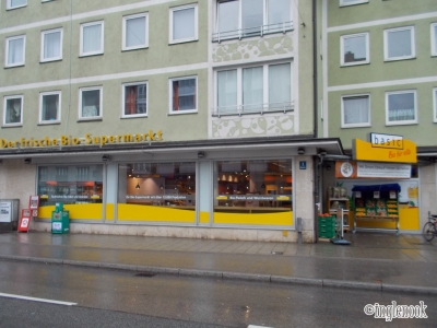 オーガニックな生鮮食品や日用品を幅広くそろえるスーパーマーケット、ベーシック Basic。 店頭に並んだオレンジ色の野菜。 形はたまねぎのよう。 かぼちゃでした。 表示を見ると、北海道かぼちゃ Hokkaido Kürbis という品種。 季節柄ハロウィンの装飾用かと思いましたが、ちゃんとした食用かぼちゃでした。 フルーツのようでおいしそう。 ドイツ、ミュンヘン。 ドイツのパン保存用巾着袋