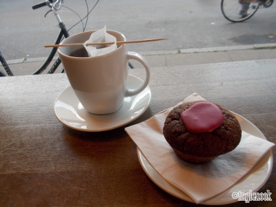 コペンハーゲンで訪れるのが楽しみな お気に入りのベーカリーカフェ、エメリーズ emmerys。 おいしいオーガニックのパン、感じのいいスタッフ、ほっこりした雰囲気。 居心地が良くてついつい長居をしてしまいます。 午後のティータイム、アイシングに魅かれてラズベリーチョコマフィンをチョイス。 ♪自転車が写りこんでいるのがコペンハーゲンらしい♪ ラズベリーの酸味が効いた大人味のマフィン! デンマーク、コペンハーゲン。 デンマークのスーパーマーケット、イヤマ Irma のバスケット