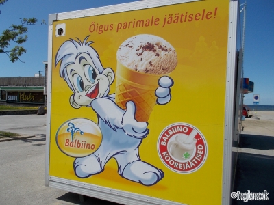 エストニアの世界文化遺産、タリン歴史地区からバスで訪れた、ピリタ Pirita。 海水浴にはまだ季節が早すぎて、ビーチにはお散歩をする人が少しいるだけ。 泳ぐ人はいません。 なので、アイスクリーム屋さんも閉店中。 エストニアのアイスクリーム・メーカー、Balbiino の看板。 雪男??風のキャラクターがユニークです。 アイスクリームおいしそう! 食べたかったなー! エストニア、ピリタ。 エストニアの黒いフラワーモチーフのペーパープレート
