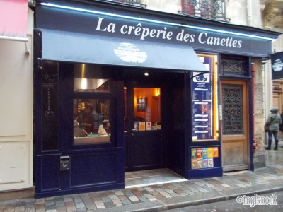 パリを訪れた時は必ず立ち寄る、お気に入りのおいしいお店。 ファラフェル ラス・デュ・ファラフェル L'As du Fallafel のと、 ガレットのラ・クレプリ・デ・カネット La crêperie des Canettes♪ パリ6区、サン・ジェルマン・デ・プレの、サン・シュルピス教会脇の小道、カネット通り rue des canettes 通り。 通りの名前がついた、クレープ屋さんです。 おひとりさまでも気軽に入れる雰囲気。 いつも頼むのは、チーズ、卵、フレッシュクリーム、そしてマッシュルームがごろごろ入ったガレット、ウィン...