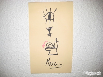 パリの街を散策中、トイレが見つからず、近くの建物に駆けこんでお願いして使わせてもらったことがあります。 その時、個室の壁に貼ってあった、張り紙。 使用後の便座を上げておくか、それとも下げておくかは、国際的な問題だったのです! フランス、パリ。 フランスの木製の温度計