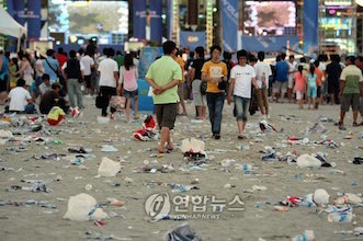 JUGEMテーマ:韓国 2015年8月9日、韓国のテレビ局SBSはあふれるごみで疲弊している韓国の海水浴場の様子をリポートした。夜遅くの鏡浦ビーチは(略)、酒の空き瓶は増え、ごみ箱もごみであふれている。午前3時、ビーチの清掃が始まると、しぶしぶ宴会は終わる。若者たちはごみを持ち帰る様子もなく、そのまま去っていった。鏡浦ビーチ周辺には1日40人余りの清掃員が投入されており、多い時は約15トンのごみを片付ける。過度の飲酒の上、海水浴場で遊んだ後のごみとともに、最低限の良心までビーチに捨て去る人が多く、間違った避...