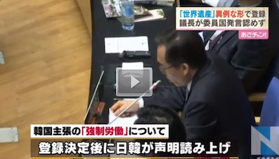 JUGEMテーマ:韓国 「日本と韓国の政治問題となっていた「明治日本の産業革命遺産」ですが、世界遺産委員会の議長が委員国からの発言を一切認めないという異例な形で登録が決定しました。(略)そして、韓国が主張している「強制労働」の歴史については、登録が決まった後に日韓両国が声明を読み上げました。「意思に反して連れてこられ、厳しい環境の下で働かされた多くの朝鮮半島出身者がいた」(佐藤地ユネスコ大使)韓国がこだわった「収容所」を連想させる「forced labor(強制労働)」という文言について、日本...
