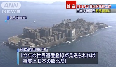 JUGEMテーマ:韓国 「明治日本の産業革命遺産」の世界遺産登録を巡り、日本への支持を表明していた投票国の一つが韓国側の説得工作で支持を撤回していたことがANNの取材で明らかになりました。投票国の一つ「セネガル」は、ユネスコ世界遺産委員会のアフリカ代表で副議長国です。このセネガルですが、日本政府の内部文書によりますと、先月25日の段階で日本への支持を口頭で表明していました。しかし、先週、韓国の説得工作を受けて日本支持を撤回し、態度の留保に転じました。韓国とセネガルの首脳会談で、朴槿恵(パク・クネ)...